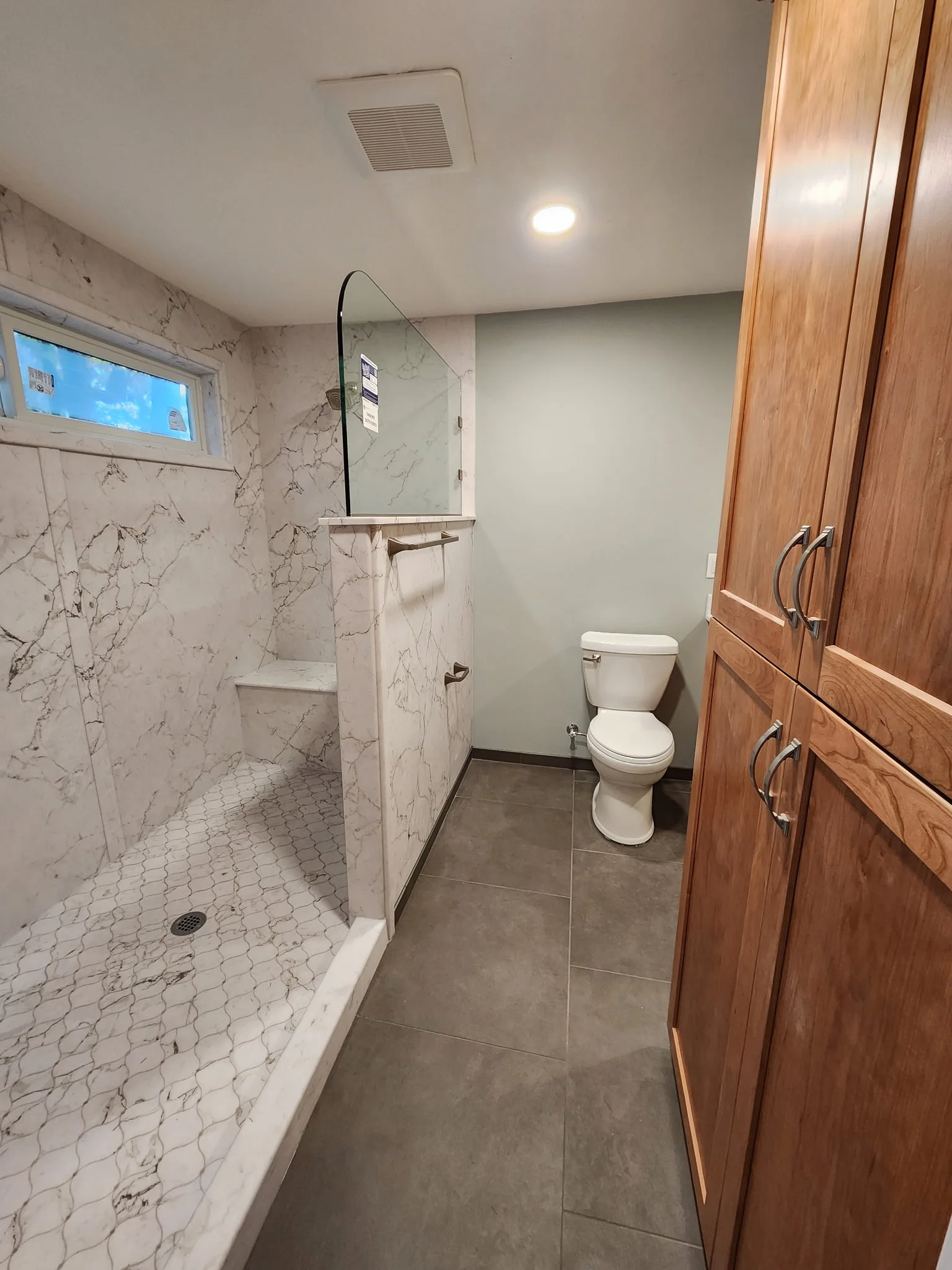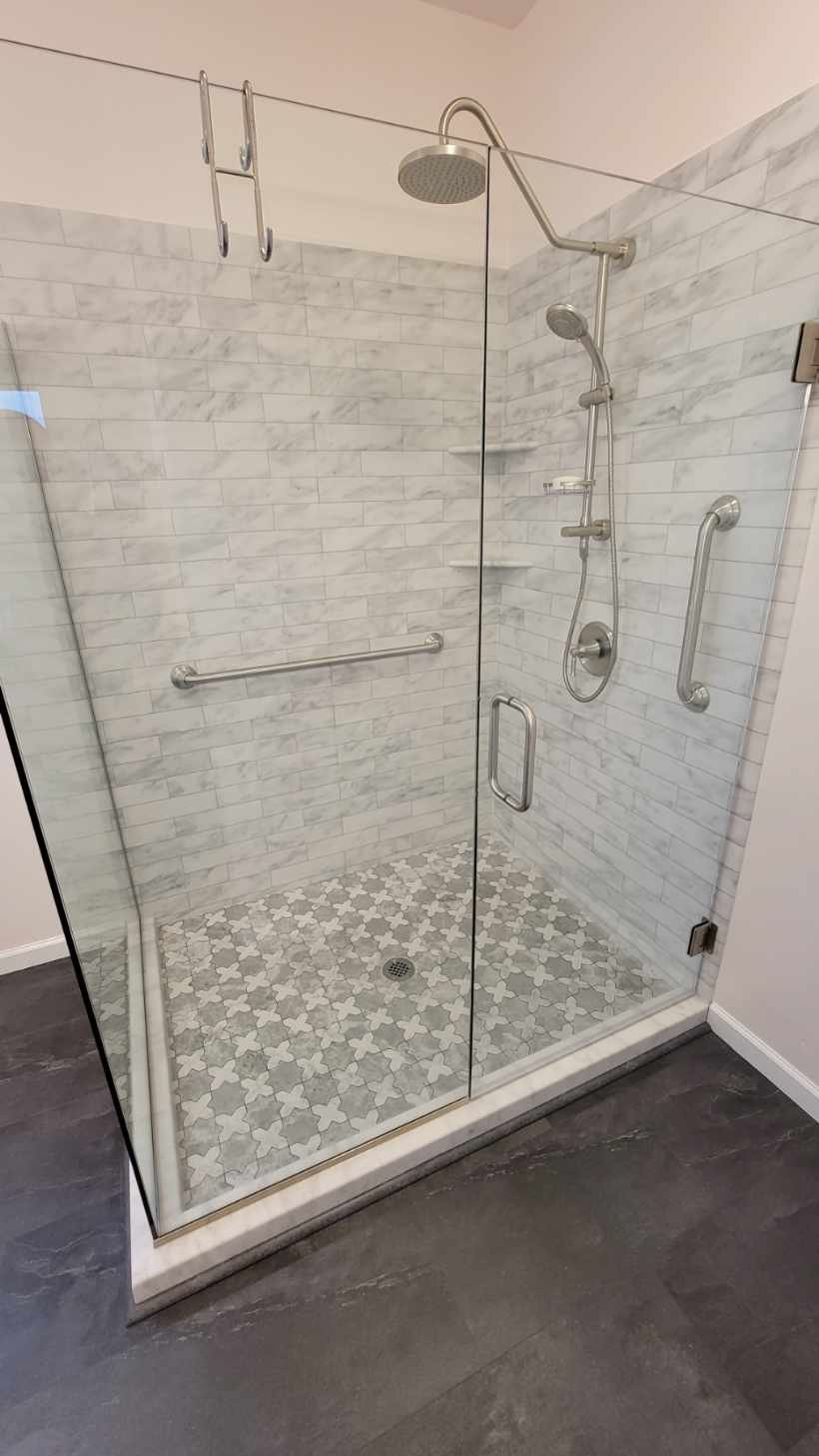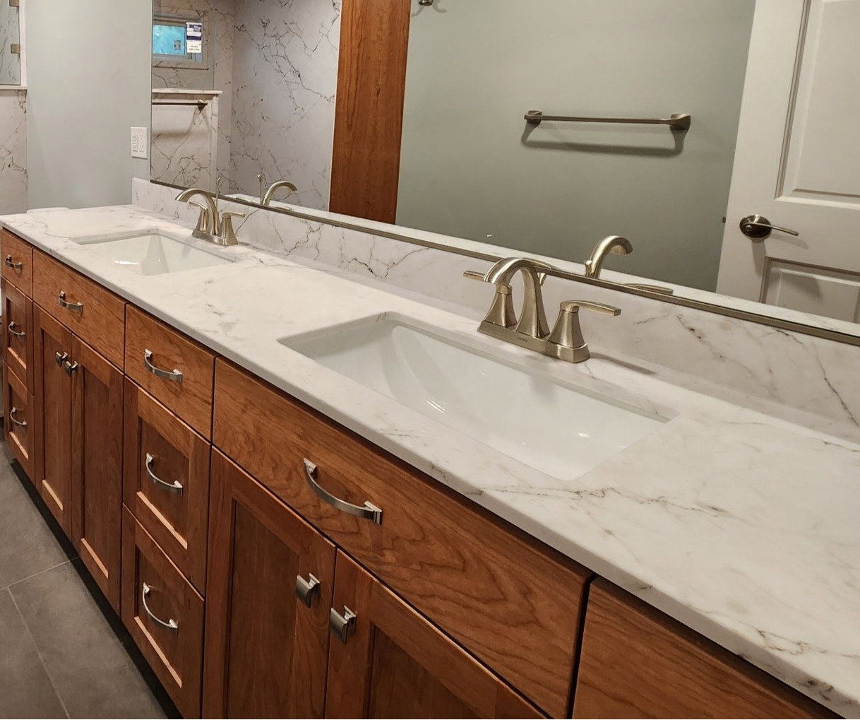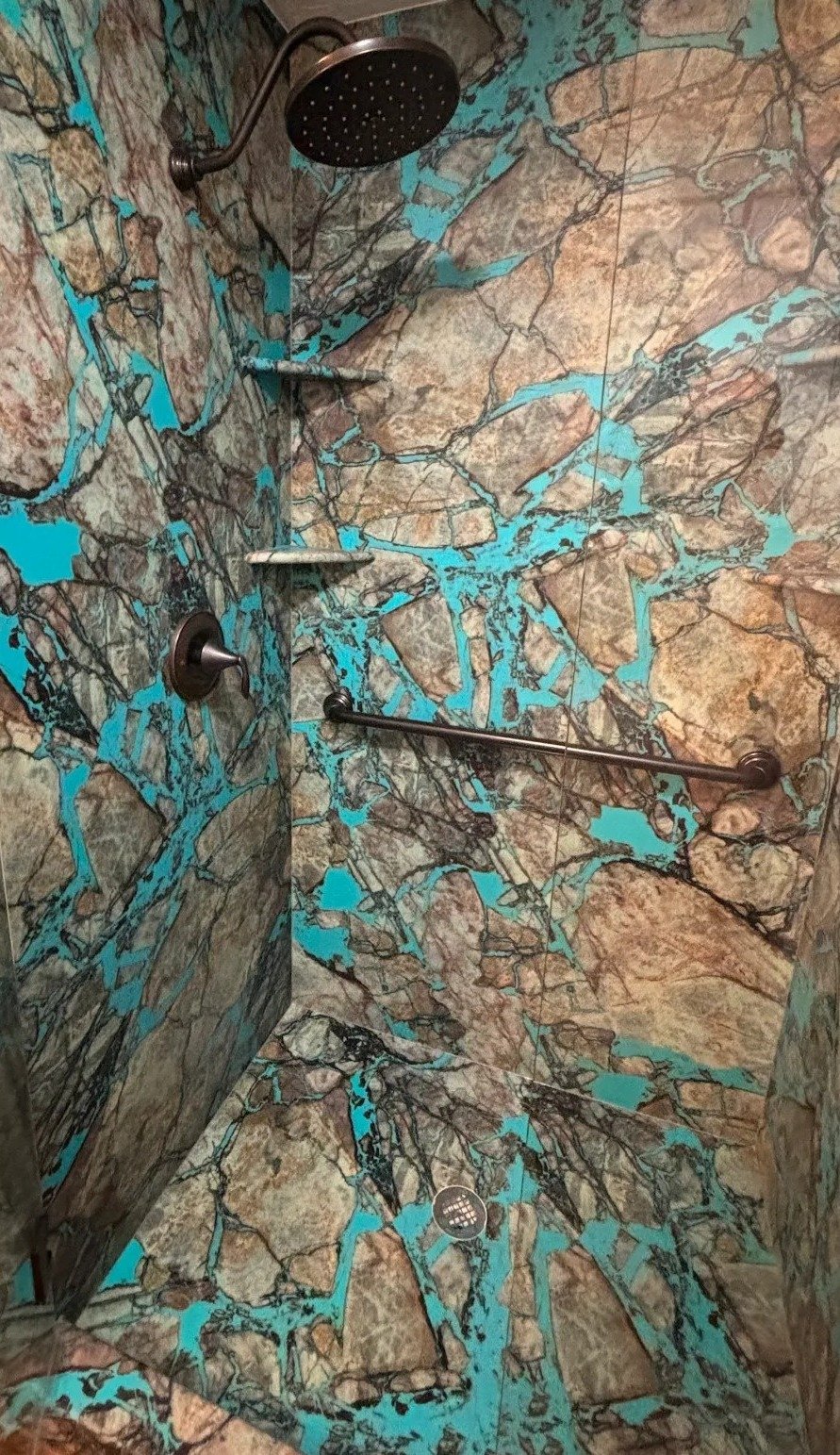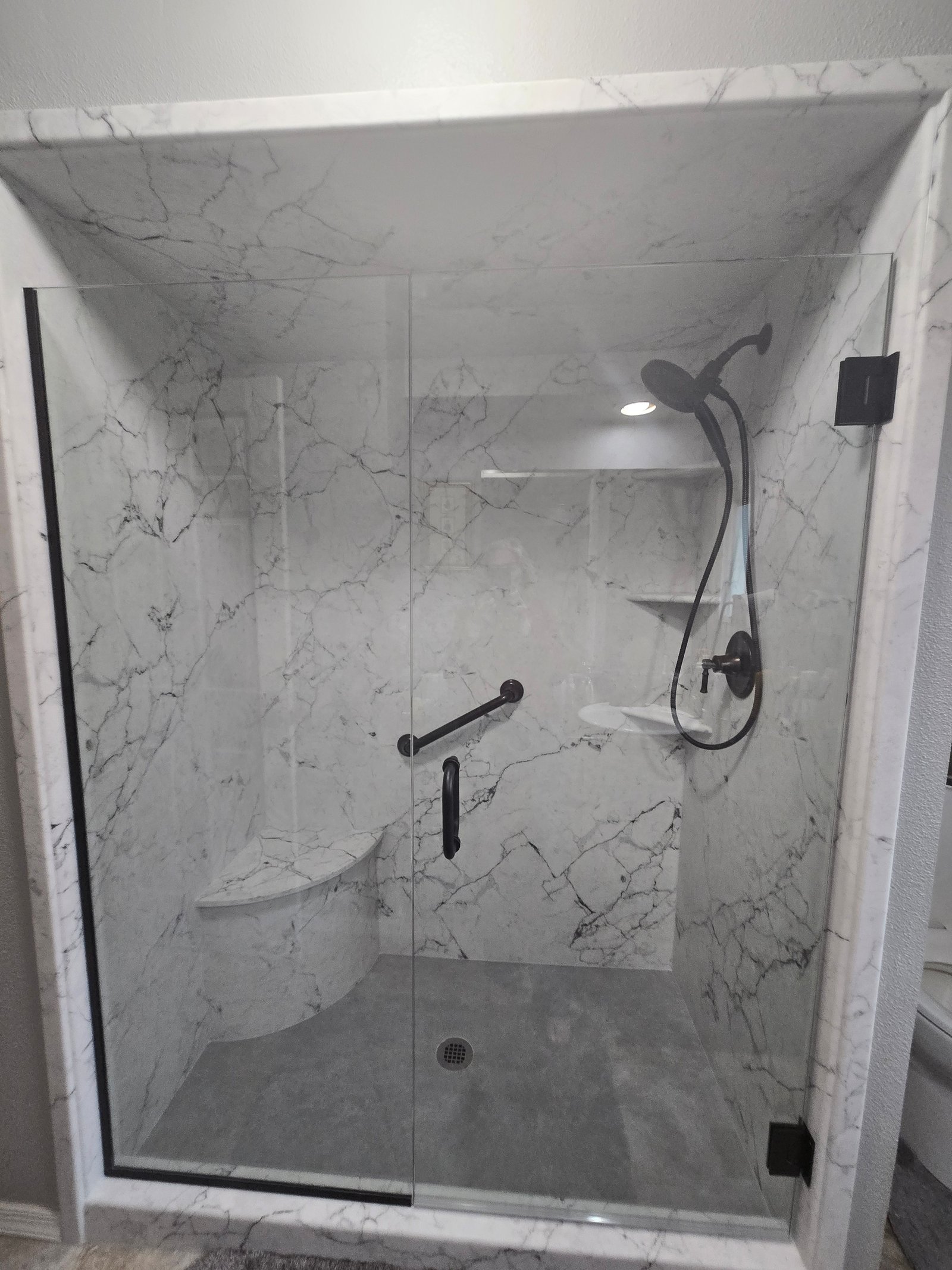 Our services include: Custom showers, tub surrounds, vanity tops, back splashes, tub decks, skirts, corner seats, bench seats, recess shelving, corner shelves, kitchen back splashes, and counter tops.
